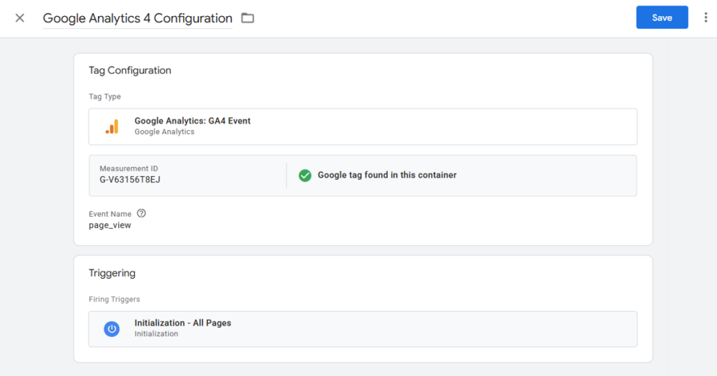 Click Save in the top right corner. Your tag is now ready, but it won’t work on your WordPress site until you publish it.